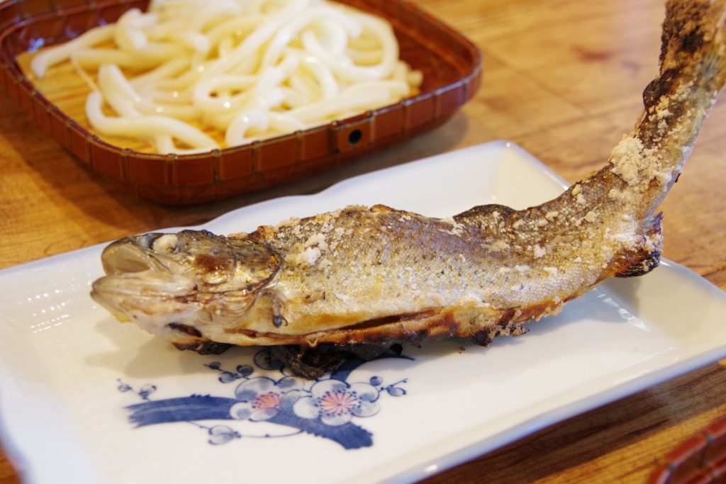 釣ったにじますはその場で調理してもらい食べることができます!もちろんそれ以外もメニューありますのでお昼ご飯もここで済ませられるのでgood!我が家も「秩父名物味噌ポテト」「ざるうどん(おかわりで2枚)」も頂きました!全部美味です!