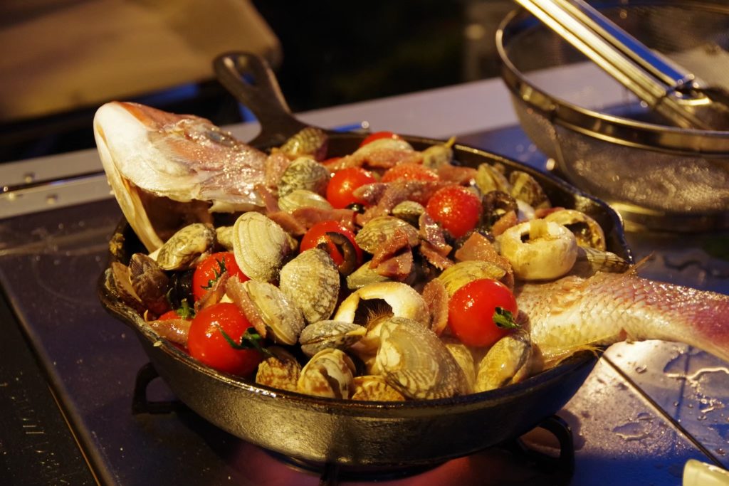 今回の料理はアクアパッツァ&タコ刺し身、からの残り汁でパスタで〆です!美味!美味すぎます!レシピはまた別の機会に・・・。