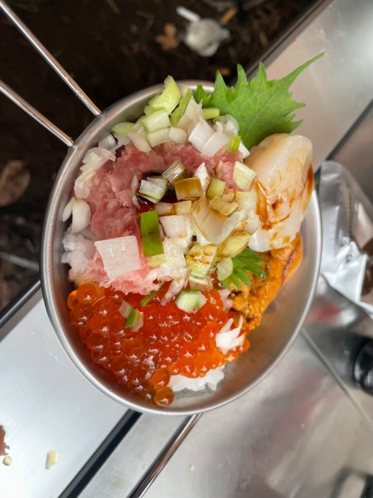 ラムチョップ&海鮮丼(朝食)!笑 各々が食べたいものを主張した結果統一感はなくなりました